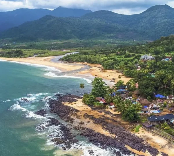 Discover the untouched beauty of Sierra Leone – where golden beaches meet lush green mountains.